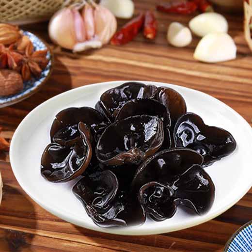 肥厚肉質(zhì)、脆嫩爽口、色澤黑亮。